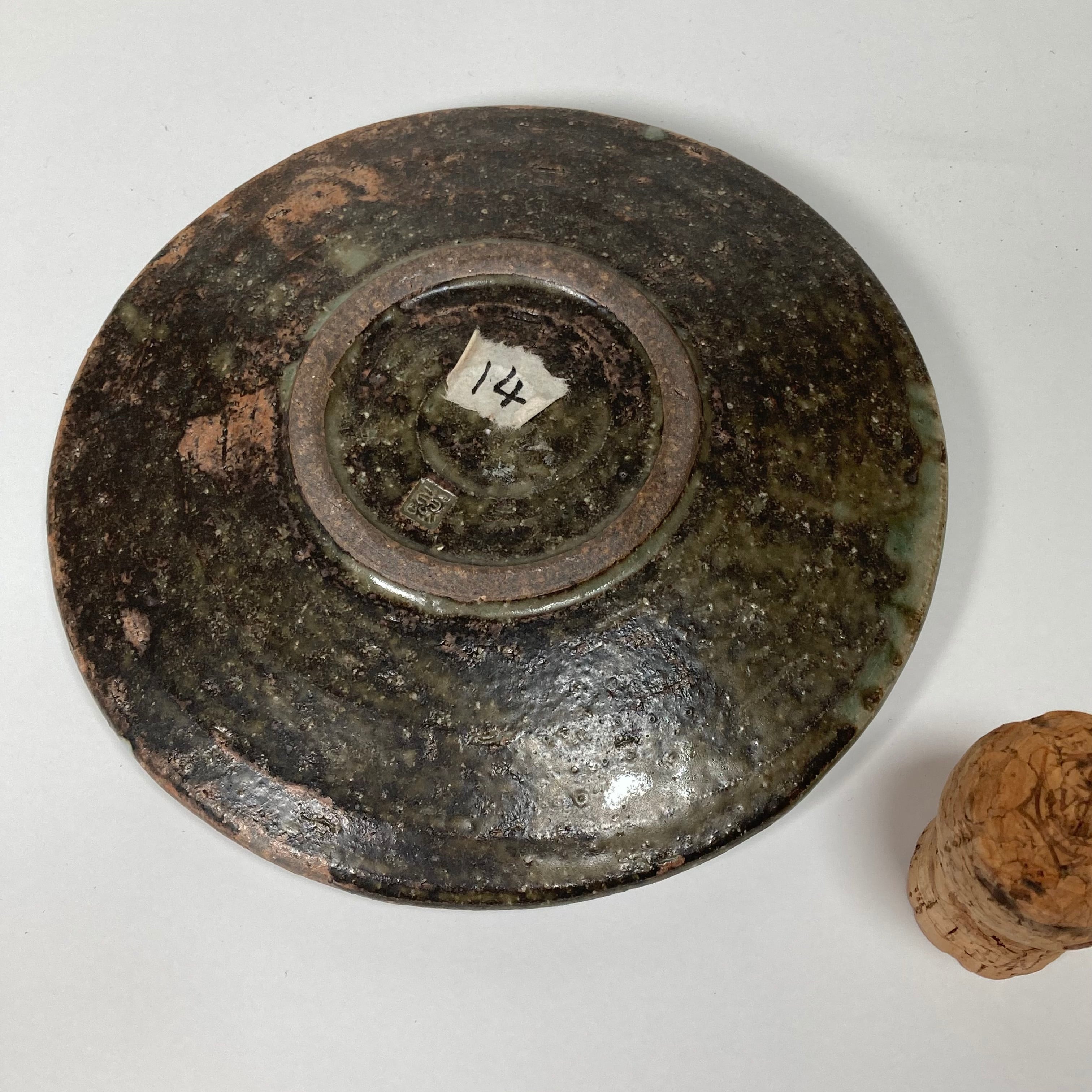 灰釉の深緑が特徴の重厚感ある皿です